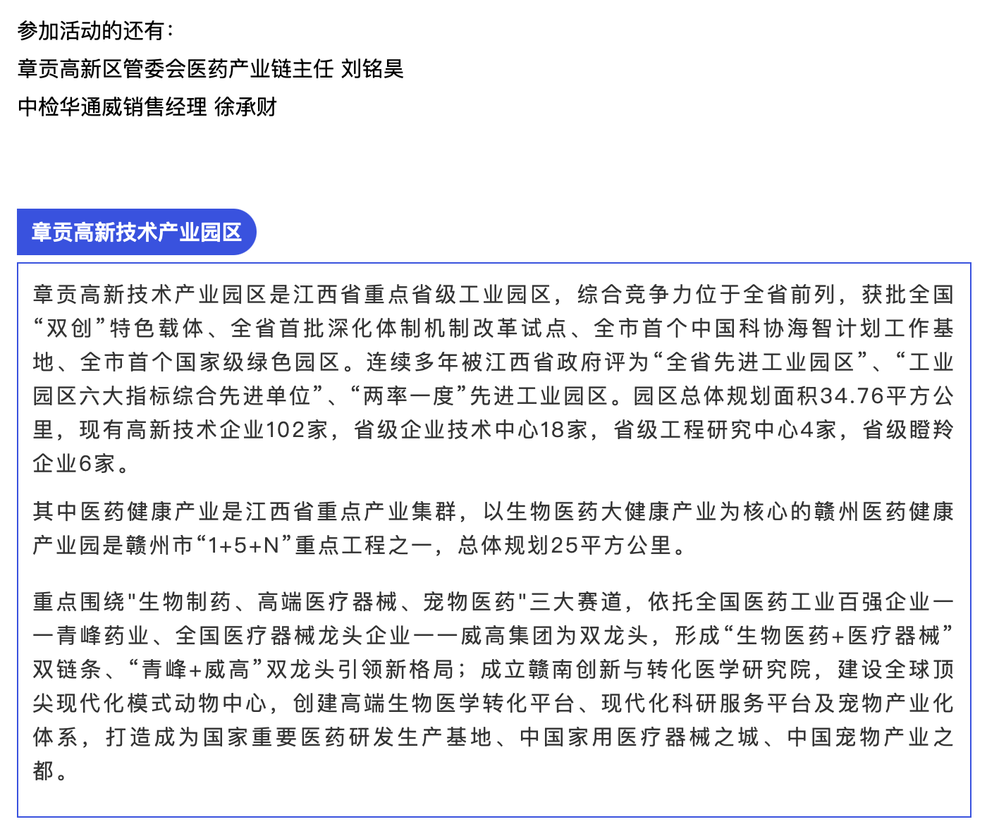 央地合作丨中检华通威与江西省赣州市章贡区政府联合成立医疗器械技术服务中心